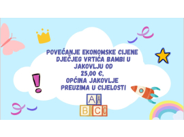 Općina Jakovlje u cijelosti preuzima trošak povećanja ekonomske cijene boravka djece u Dječjem vrtiću Bambi u Jakovlju te istovremeno povećava iznos ekonomske cijene na temelju koje se obračunava sufinanciranje boravka djece u dječjim...