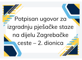 Nakon provedene javne nabave, potpisan je Ugovor o izvođenju radova rekonstrukciji prometne površine za poboljšanje sigurnosti prometa na dijelu Zagrebačke ceste – nastavak izgradnje pješačke staze – 2....